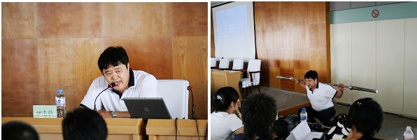 伊志强老师是黑龙江省政协委员、齐齐哈尔市政协常委,也是举重国际A级裁判以及国家级健身指导员。在此次讲座中,伊老师还向听讲的同学介绍了举重的相关知识。他指出,广义的举重运动已经一分为三,发展成为三个相对独立的运动项目,一是竞技举重,又称奥林匹克举重,通称举重;二是健美运动,又称健身运动;三是力量举重。竞赛动作方式分为抓举和挺举两种。同时,伊老师着重介绍了举重的犯规动作和姿势。讲解的同时,伊老师用丰富的图片报道、珍贵稀有的视频材料以及大量的现场示范加深了同学们对举重运动的认识和理解,使讲座内容更加生动,良好的互动形式促进了师生思想交流,促进了学生对火炬传递相关常识的了解。