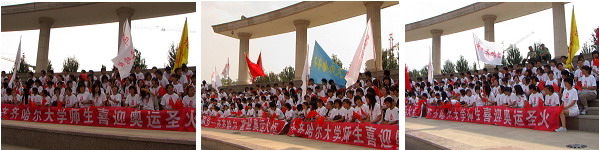 圣火传递在即,我校校园里到处洋溢着盼奥运、迎圣火的浓浓氛围。对于即将零距离感受“祥云”火炬的激情温度、体验奥运的荣耀,全体师生倍感骄傲和自豪。围栏处彩旗招展,体现着欢乐、喜庆、热烈的气氛;楼宇间条幅高挂,“齐齐哈尔大学师生喜迎奥运圣火”、“迎奥运 讲文明 树新风”、“文明和谐的齐齐哈尔为奥运火炬添光彩”等30余条标语十分醒目,文明、和谐、开放、阳光的齐大正为圣火顺利传递做最后的准备。