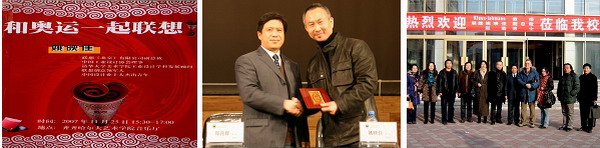 “迎奥运、讲文明、树新风”,校园里涌动着文明的热潮。“第十届校园文化艺术节”以迎奥运为主题,成为一大亮点;“阳光体育运动”蓬勃开展;奥运文化、奥林匹克精神培育贯穿体育教育的全程。第十届田径运动会上,“‘祥云’火炬传递模拟跑”成为全场最受人瞩目的运动项目;“首届校园体育周”精彩纷呈:“奥运会、大冬会知识竞赛”、“迎奥杯”校篮球联赛、“迎奥杯”校排球联赛、“迎奥运”体育摄影展、“迎奥杯”校羽毛球联赛、“迎奥运”体育文化知识讲座、迎奥运”体育电影展、“迎奥运”第二届校园健美操大、第二届“迎奥运”POP海报设计大赛、第二届“迎奥杯”flash设计大赛、“点燃奥运激情,实现百年梦想”图片展等系列活动丰富多彩;学生社团巡礼月尽显青年学子蓬勃风采。“求索”讲坛系列奥运知识、奥运礼仪讲座深受同学们欢迎;“祥云”圣火贴图、奥运T恤、“福娃”系列纪念品等有关奥运物品热销校园;“祥云”火炬等“奥运”主题画面成为师生电脑的主题屏保;“迎祥云、盼奥运、讲文明、树新风”文明标牌亮相学生公寓、寝室;离退休教职工“迎奥运大型书画展”,为圣火传递造势助威;一系列有关奥运的主题班团会、座谈会进一步推动我校“迎奥运、讲文明、树新风”活动的蓬勃开展。