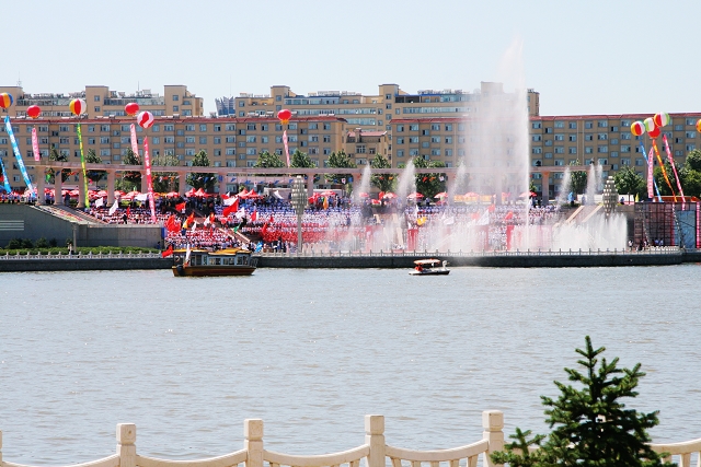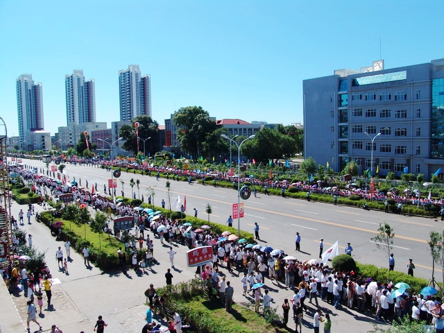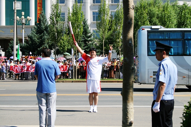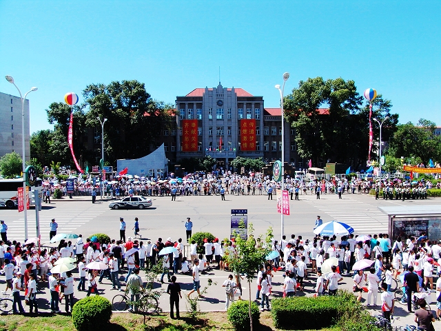 “中国加油!奥运加油!北京加油!”8时许,当宣布北京2008奥运火炬接力齐齐哈尔传递活动开始时,全场沸腾。师生们竞相挥舞着手中的国旗和奥运会会旗,呐喊声此起彼伏,现场气氛热烈。第一棒火炬手刘艳手持火炬,与护跑手会合起跑,开始了奥运圣火在齐齐哈尔的“和谐之旅”。