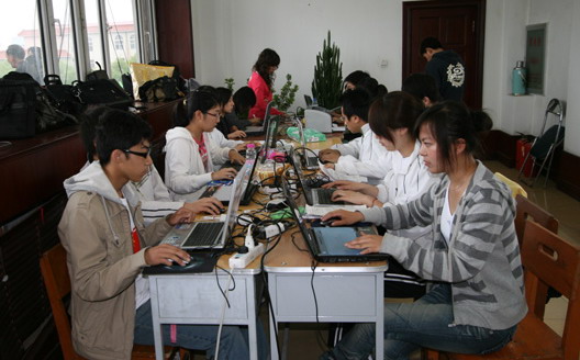 本届运动会上,在主席台后面的屋子里,两排笔记本电脑依次排列,许多学生在电脑前忙碌着,这里是大学生记者团进行图文直播的现场。经过精心的策划和准备,我校大学生记者团首次实现了对运动会的全程图文直播。