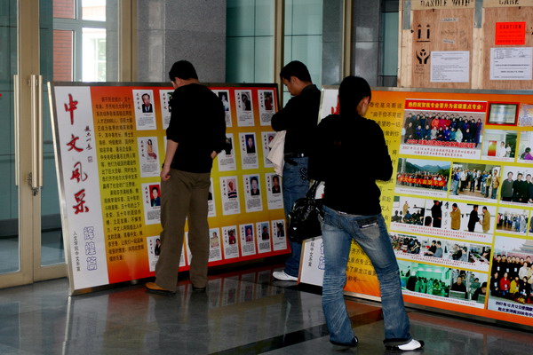 6月3日,“中文风采”的大型图片展我校中区教学楼一楼大厅一推出,就受到了广大师生的热切关注。师生们纷纷驻足观看,有的还细细品味。有的同学说:“看了展览,我们就更受鼓舞!我们有那么多优秀的校友,真为此感到自豪!”