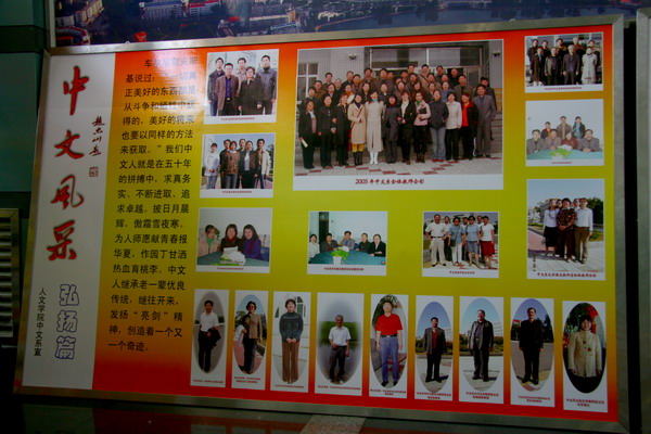 日月如梭,流不尽中文人可吟可颂的辉煌故事;岁月之弦,奏响了中文人可圈可点的奋进凯歌。此次主题为“中文风采”的大型图片展,既是几代中文人辛勤育桃李的历史记录、中文系五十年辉煌业绩的全面展示,也是新时期中文人与时俱进谋发展、迈向新里程、开创新纪元的生动诠释,也是该系全体中文人献给建系50华诞的一份礼物,必将激励全体中文人继续以求真务实的态度、科学严谨的作风、奉献敬业的精神创造出更加辉煌灿烂的明天。