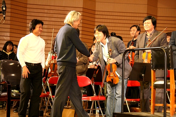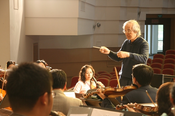 此前,卞祖善先生正在哈尔滨歌剧院开展艺术指导工作。当他得知在省会哈尔滨之外,还活跃着一支优秀的业余交响乐团,他非常高兴,特意利用短暂的休息时间到我校访问,看望并亲自指导我校交响乐团。