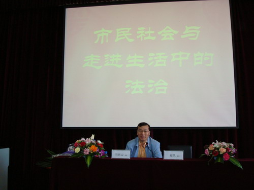讲座中,马教授从独特的视角讲述了“市民社会与法治的内在关联”、“看得见的中国市民社会”、“走进生活中的法治”等问题,使我们对法治生成、法律移植、公民法律意识的理解更加透彻和深入。讲座过程中,同学们被马教授生动、幽默的语言,机敏的思维、精彩透彻的讲解深深吸引,整场讲座不时被阵阵热烈的掌声打断。