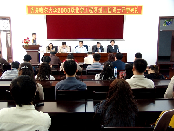 5月16日上午9时,我校2008级化学工程领域工程硕士开学典礼在化学与化学工程学院会议室举行。这是我校被批准为工程硕士培养单位首次招生后,新入学的首批工程硕士研究生。副校长邓启刚出席开学典礼,研究生处处长张文治、化学与化学工程学院院长张树军、副院长郭祥峰与首批入学的全体化学工程领域工程硕士研究生参加了开学典礼。研究生处处长张文治主持了开学典礼。