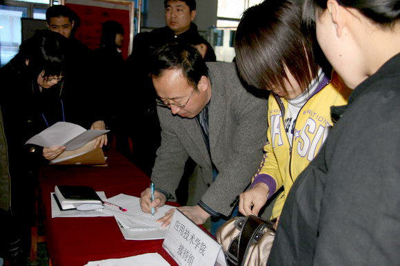 我校学生指导中心主任李迎春、应用技术学院党委书记张宪忠、副院长周强、马金权、祖彬等参加了此次供需见面会,并为应聘毕业生及用人单位进行了指导与服务。