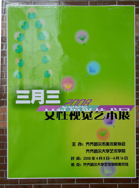 为了集中展示鹤城女性艺术成果,打造女性艺术品牌,促进女性文化艺术的发展,齐齐哈尔市美术家协会和齐齐哈尔大学艺术学院联合举办的“三月三2008女性视觉艺术展”于4月8日上午在我校美术馆开幕。