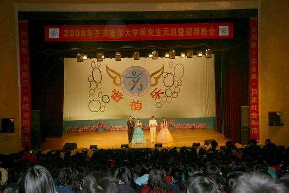 欢天喜地辞旧岁,师生和谐迎新年。12月20日晚,经过精心筹备,由校研究生处主办,校研究生会承办的2008年研究生元旦暨迎新晚会在中区文化宫隆重举行。