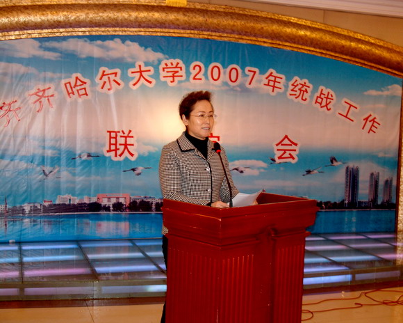 面对新形势、新任务,她希望统一战线成员们更要继承传统,心系学校,立足岗位,扎实创业,为推动学校又好又快的发展做出新的贡献。