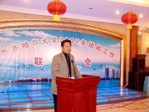 接下来,市政协副主席、市委统战部部长李有彬在联谊会以上致词。他代表市委统战部对我校一年来的统战工作给予了充分肯定,并对我校今后的统战工作提出了殷切地希望和要求,衷心祝愿齐齐哈尔大学的明天更加美好。