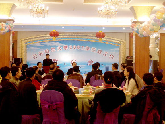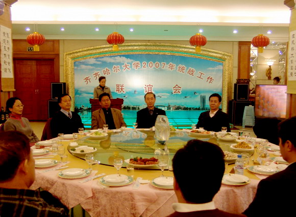 我校省、市、区三级政协委员;民盟、民革、九三学社、农工民主党、民进等党派组织成员的代表;无党派人士代表;侨眷代表;海外归国人员代表、少数民族代表以及各基层党委领导和相关职能部门负责人参加了统战工作联谊会,共叙团结和谐之情,畅言齐大美好明天。