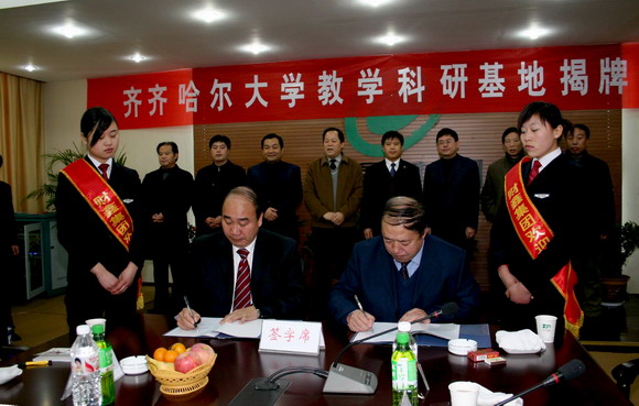 2007年12月21日上午10时,我校与河南财鑫集团产业化合作项目签字仪式暨齐齐哈尔大学教学科研基地揭牌仪式在河南财鑫集团隆重举行。