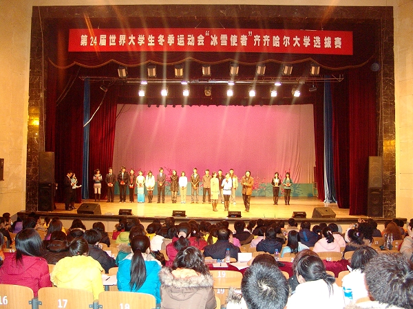 1月4日晚,我校中区文化宫歌声飞扬,舞韵翩翩,第24届世界大学生冬运会“冰雪使者”齐齐哈尔赛区选拔赛在中区文化宫如期举行。