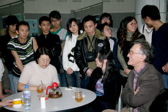 26日下午,三位受聘专家在美术馆展厅与艺术学院工业造型专业05级本科生围绕着《艺术思维与表达》等基础课题进行了研讨与交流,对学生们的专业学习给予了指导,提出了一系列富有建设性的意见和建议。