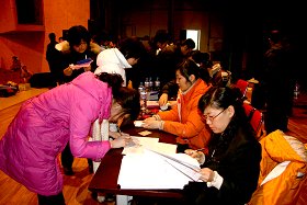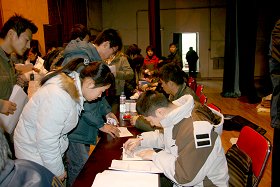 12月5日,我校2008届毕业生供需双选会在西区体育馆隆重召开。来自国内10余个省市的172家企事业用人单位驻场参会。包括我校毕业生及部分非毕业生在内的六千余人次入场参加了双选会。副校长姜守训出席大会现场,学生指导中心主任李迎春、副主任吴刚、以及各学院负责学生工作的副书记副院长、负责学生就业工作的辅导员、校学生指导中心的工作人员等一直在大会现场。校办、教务处、保卫处、网络信息中心、新闻中心、体育馆等相关单位各司其职,为大会做好各项服务工作。