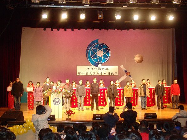 闭幕式上,副校长姜守训宣读了《齐齐哈尔大学第十届大学生学术科技节各项竞赛活动获奖集体和个人名单》和《2007年度在全国、全省大学生学术竞赛活动中获奖集体和个人名单》,对在本届科技节中表现突出的科技活动先进集体和个人进行了命名表彰。我校王晓宇等40余名学生个人、近120个学生团队分获“求知•探索•创新”大学生科技论坛、“科技之星”大学生知识与创意能力大赛、大学生创业计划大赛等活动的各类奖项;通信与电子工程学院、经济管理学院、理学院、计算机与控制工程学院、生命科学与工程学院、应用技术学院、化学与化学工程学院、人文学院获得本届科技节“优秀组织奖”荣誉称号。