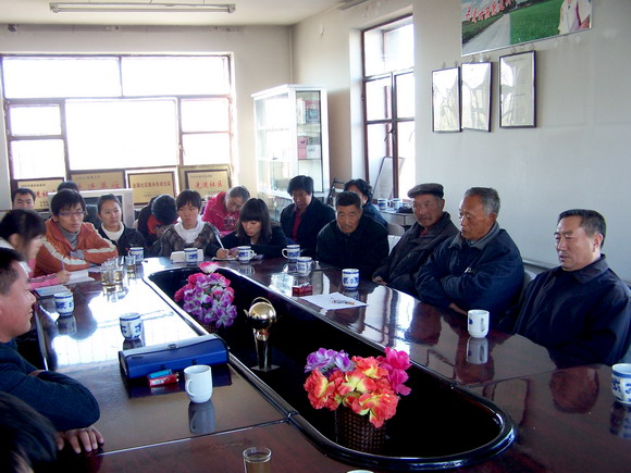 13:45,在苗雨君、樊友才带领8名学生党员来到龙江县青华社区服务站,与龙江县11名老党员就学习贯彻十七大精神,构建和谐社会进行了专题座谈。