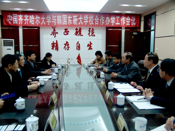 郑奇彦总长表示,在广阔的大平原上,在美丽的劳动湖畔,有这样一所高水平的大学,使人感到非常高兴。参观了美丽的齐大校园,让人心情愉快。齐大人热情友好,让人心里很温暖。齐齐哈大学真是到中国留学和学习汉语普通话的好地方,给他留下了非常美好而难忘的印象。他说,韩国东新大学校将进一步加强与齐大的交流与合作,为提升合作办学水平而共同努力。
