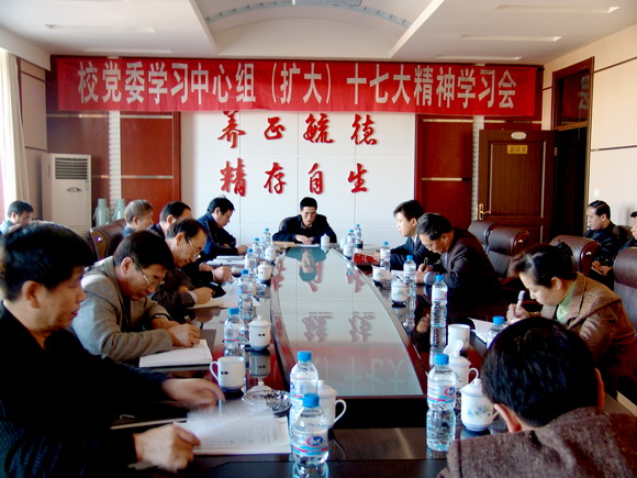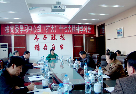 按照校党委《关于认真学习贯彻党的十七大精神的意见》提出的学习要求,11月13日下午,校党委理论学习中心组在机关办公楼504会议室举办十七大精神第三次集体学习。
