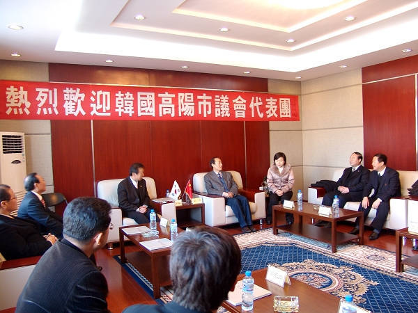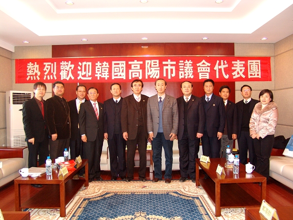 11月16日下午,以韩国高阳市议会议长裴哲镐为团长的高阳市议会代表团一行五人在市人大常委会副主任王光陪同下来我校参观访问。在参观了我校网络信息中心、体育馆、游泳馆、音乐厅等教育教学场馆和设施及各个教学区之后,校领导唱江华、曲伟建、郑喜群在行政楼会客室与来宾进行了座谈,外事处副处长郭寒竹等参加了座谈。