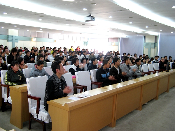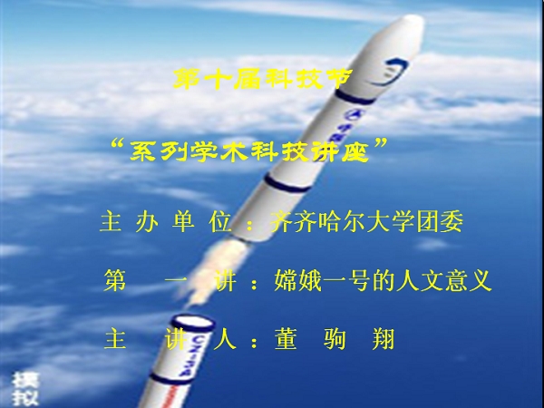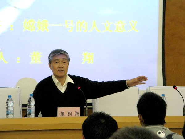 董教授首先讲述了人类航天事业的发展史和各国在航天事业中取得的伟大成就。之后,还从发射“嫦娥一号”的目的、“嫦娥一号”发射成功的现实意义以及中国未来航天事业的前景等方面进行了深入的讲解,不但使同学们了解了航天事业的发展和“嫦娥一号”的人文意义,而且开阔了同学们的视野,增长了知识。