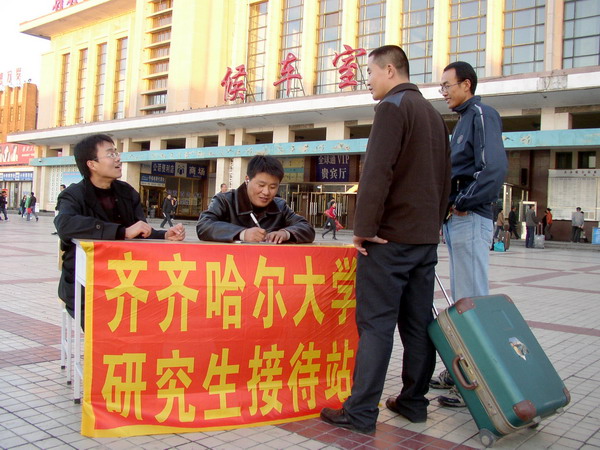 15日7:30—17:00,我校研究生处安排专人在齐齐哈尔火车站设立了迎新接待站,安排了专程迎新接站车,全程负责做好迎新报到入学接待工作。