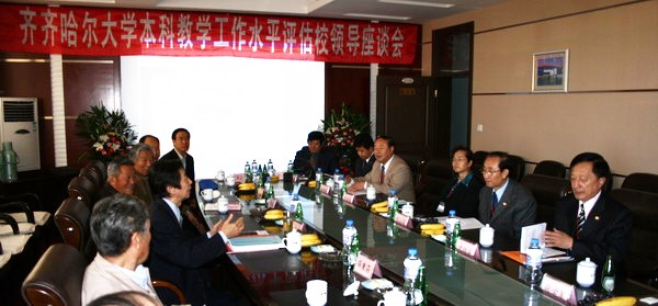 校长唱江华、党委副书记史铁成、王凤琴、党委常委、纪委书记张学军、副校长曲伟建、姜守训、张忠恒、郑喜群、邓启刚、工会主席吕晓辉,原齐齐哈尔轻工学院党委副书记、副院长张元士,原齐齐哈尔轻工学院党委委员、副院长薛秉昌,齐齐哈尔大学原党委常委、师范学院党委书记刘祯,齐齐哈尔大学原信息科学与电气工程学院副院长于凤明,原齐齐哈尔师范学院历史系教师刘恩格,齐齐哈尔大学原教务处长、评建办公室副主任高广君参加了座谈。