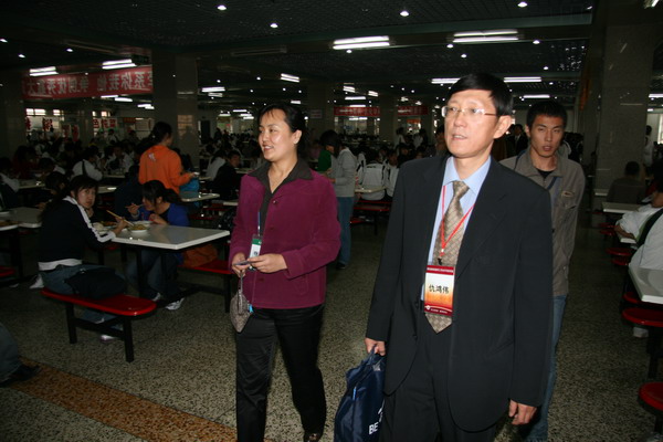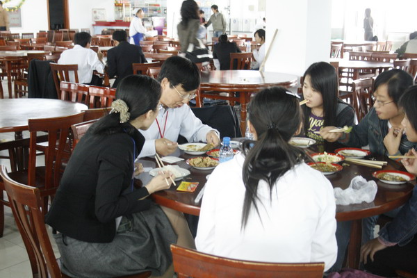 9月25日中午,评估组的部分专家们走访了我校第五学生食堂,考察了食堂设施和学生伙食情况,并与同学们一起在学生食堂就餐、座谈。