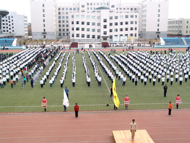 为贯彻落实教育部、国家体育总局、共青团中央三部委联合下发的关于在全国范围内全面启动全国亿万学生阳光体育运动的通知要求,4月28日上午,我校在西区体育场隆重举行了“迎奥运 强体魄”广场健身活动启动仪式。 我校党委副书记王凤琴、副校长郑喜群出席启动仪式。体育学院党委书记曹忠俊、院长姚大为、学生处处长王刚、校团委书记黄伟中、教务处副处长王云鹏、团委副书记李秀梅等部门的领导和来自各学院的一千多名学生列席会场。黄伟中主持了启动仪式,姚大为宣读了我校广场健身活动方案。