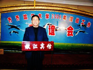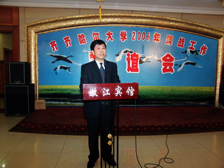 她说,携手奋进求发展,春华秋实又一年。回望2006年,我校坚持以科学发展观为统领,在发展中不懈探索,求实创新,艰苦奋斗,学校的各项事业都获得了长足的发展:学校“十一五"发展蓝图已经绘就,教学工作“迎评促建”全面推进,教学质量、科研水平和学科发展能力稳步提高;来自全国各地的150余名硕士毕业生落户齐大,人才队伍结构明显改善;坚持以人为本强化育人,学校党建思想政治工作、学生工作、文明单位创建和平安校园建设等成果颇丰;交响乐团服务师生、享誉社会,彰显了齐齐哈尔大学的校园文化特色;正在建设中的3栋28层国际交流中心,优化了学校的办学条件,将为魅力鹤城增添一道亮丽的风景。