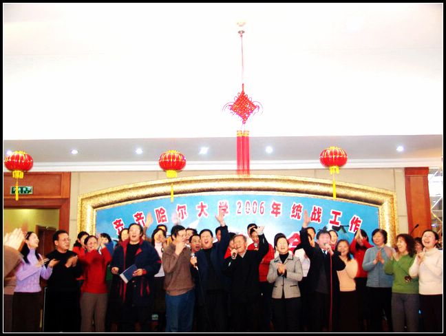 12月22日晚,嫩江宾馆宴会大厅张灯结彩、欢声笑语,一派欢乐祥和的气氛。值此辞旧迎新之际,我校教职员工党内党外,欢聚一堂,一年一度的统战工作联谊会在这里隆重举行。 市政协副主席、市委统战部长王光、市政协副主席、九三学社市委主委孙柏林、民革市委主委张敬先、市侨联主席迟国强、农工民主党市委副主委王苏平、民盟市委副主委李涛、市委统战部副部长陈先怀、张丽杰、杨爱亭、市委统战部党派处副处长王绍忠、周宇和我校校领导唱江华、史铁成、王凤琴、张学军、曲伟建、姜守训、张忠恒、郑喜群、邓启刚、吕晓辉及我校省、市、区三级政协委员;民盟、民革、九三学社、农工民主党、民建、民进等党派组织成员的代表;无党派人士代表;侨眷代表;海外归国人员代表、少数民族代表以及各基层党委领导和相关职能部门负责人共叙团结友谊之情,畅言齐大美好未来。
