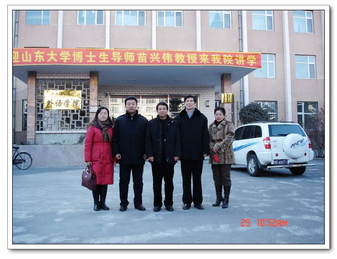 2006年12月29日,山东大学外国语学院副院长、博士生导师、教育部人文社会科学重点研究基地“北京外国语大学中国外语教育研究中心”兼职研究员苗兴伟教授应我校外国语学院的邀请,来我校讲学。 我校副校长郑喜群与苗兴伟教授进行了亲切地交流,并代表学校对苗兴伟应邀来我校讲学表示了诚挚地谢意。