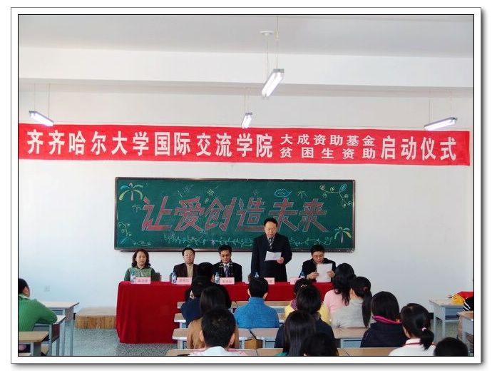 启动仪式开始后,国际交流学院副院长郭寒竹首先宣读了《齐齐哈尔大学国际交流学院“大成资助基金”管理暂行办法》,明确了资助对象、资助条件、资助认定、资助措施、资助管理以及注意事项等;宣读了李奎喆先生及有关校领导、国际交流学院师生捐款情况;宣布了首批获资助学生名单。