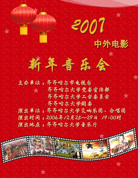 重温经典,欢庆新年。从12月25日开始,我校2007中外电影新年音乐会即将隆重上演,这是继《长征组歌》之后我校交响乐团及合唱团奉献给全校师生及鹤城人民的又一道“文化大餐”。