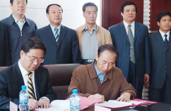 在两校校际合作签约仪式上,我校校长唱江华教授与燕山大学校长刘宏民教授分别代表双方在两校校际合作与人才培养协议文本上签字,我市副市长孙纲、马立群与我校副校长曲伟建、姜守训、郑喜群、邓启刚等陪同考察并出席校际合作签约仪式。