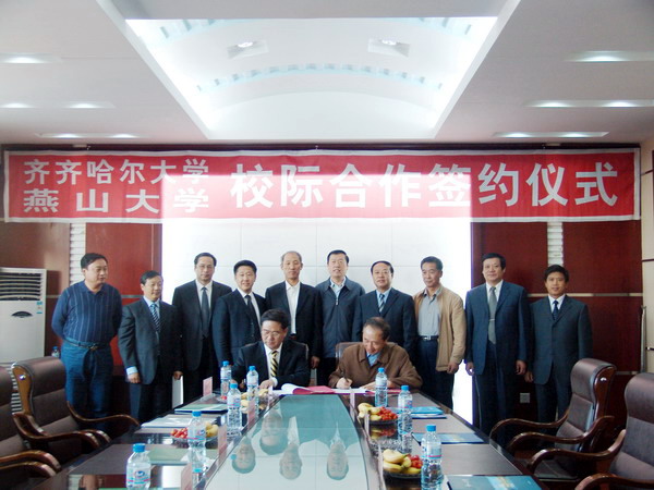 座谈结束后,我校与燕山大学签订了《燕山大学与齐齐哈尔大学人才培养协议》等校际合作协议文本。