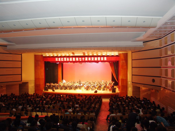 演出在气势恢宏的交响序曲《红旗颂》中拉开帷幕,交响乐团为师生们奉献上了美声独唱、管弦乐合奏、小提琴协奏和钢琴协奏等十二个精彩节目。唱江华校长演奏的小提琴协奏曲《梁祝》掀起了两场演出的高潮,赢得了全场经久不息的热烈掌声。副校长邓启刚等高水准的美声独唱,令师生深深陶醉,全场师生对他们的精彩演出报以阵阵热烈的掌声。乐团指挥孙相根倾情投入的指挥风采和乐团高水平的演奏,给师生留下深刻印象,使师生享受了一次高品位的艺术盛宴。师生先后多次登台献花,对交响乐团精彩演出表示真诚地感谢。