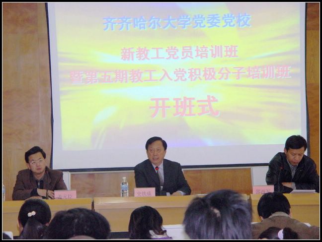 为进一步加强在青年教工中发展党员工作,推进"双优培养工程", 切实加强对新教工党员和青年教工入党积极分子的培养教育,确保我校发展党员工作顺利进行,提高新党员的素质,使刚刚来我校工作的新党员尽快熟悉环境,明确任务和使命,在学校建设尤其是在迎评促建工作中更好地发挥共产党员的先锋模范作用,按照《中共齐齐哈尔大学委员会党校工作细则》的有关规定,我校党委党校举办了教工新党员和第五期教工入党积极分子培训班。