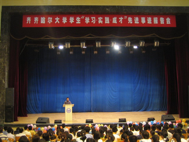 6月10下午,我校大学生“学习·实践·成才”先进事迹报告团在中区文化宫隆重举行首场报告会。学校党委副书记王凤琴莅临指导。校团委书记黄伟中主持报告会。外语学院副书记副院长杨国志、计控学院副书记副院长丁新、理学院副书记副院长胥军参加了报告会,以上三个学院的团委书记、辅导员以及1600名学生代表聆听了报告。 组建大学生“学习·实践·成才”先进事迹报告团是为了深入贯彻学校党委的工作部署,全面推进社会主义荣辱观教育活动和“树形象、创一流业绩”主题教育活动向纵深方向发展,广泛宣传我校团员青年中涌现出的先进人物及典型事迹,用身边人、身边事教育引导学生,激励感染广大同学刻苦学习、锐意进取、投身科技、实践成才,争当全面发展的学习标兵。