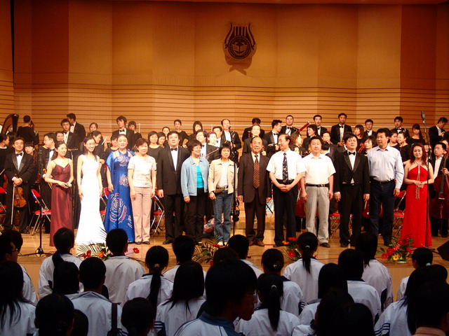 音乐会上,交响乐团演奏了《红旗颂》、《卡门》序曲、《红色娘子军》选段等著名曲目,校长唱江华的小提琴协奏曲《梁祝》更是将演出推向了高潮。一支支中外名曲,把观众带入了高雅的艺术殿堂,让大学生们不出校门便享受到高雅艺术的熏陶。演出在《拉德兹基进行曲》的欢快节奏中结束,同学们情不自禁地随着节拍击掌,音乐与掌声交相辉映,当乐团全体成员起立面对观众的时候,观众席响起长时间的热烈掌声。演出结束后,很多同学还不肯离去,一位05级的大学生深情地说:以前我们接触的都是流行音乐,象今天这样的交响音乐会,以前只是在电视上看过,今天高雅艺术走进了校园,贴近了我们大学生的生活,感觉非常好,非常高兴。