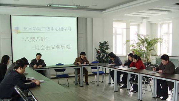 4月6日下午,我校艺术学院党委二级中心组在艺术中心四楼会议室召开会议,认真学习胡锦涛总书记关于社会主义荣辱观的重要论述和学校党委《关于在全校开展社会主义荣辱观教育实践活动的意见》,学院领导班子成员、党委委员、系部主任、院办和学工办主任、思想政治辅导员等参加了学习。