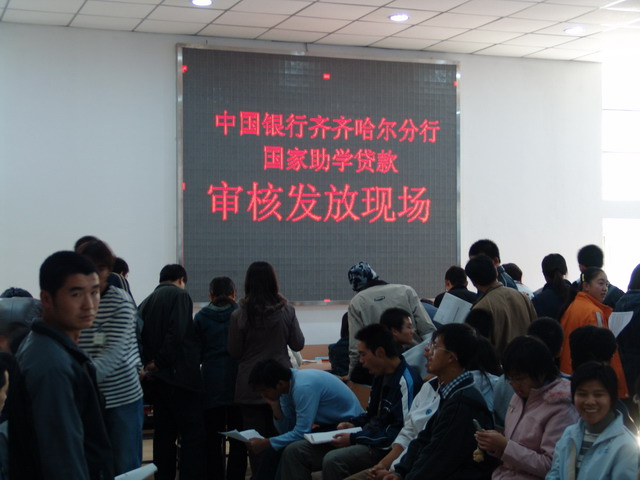 学校与经办银行中国银行齐齐哈分行积极协商,达成共识:先处理和解决贫困学生贷款的实质问题,目前暂时解决不了的有关问题,双方积极努力,待时机成熟再酌情处理。按照原定贷款程序,从学生填写申报材料、逐级审核到贷款进户需要三个多月的时间。银校双方为尽早把贷款发到学生手中,经共同协商,除了必要的公示时间之外,一律压缩工作周期,银校双方制定了严格的贷款工作日程表,明确要求,并采取学生处、财务处和经办银行等几家“联合办公、同步审核”的方法加快了贷款进程。工作人员加班加点,有时连续几天工作到后半夜两三点钟;中国银行齐齐哈尔分行也抽调十余名业务骨干放弃双休日时间为贫困学生办理贷款审核发放手续。