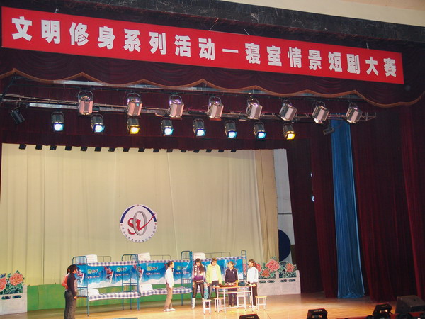 10月26日下午,由我校团委、校学生会主办,校学生社团联合会承办的大学生“文明修身工程”系列活动之寝室情景短剧大赛在中区俱乐部隆重举行。校党委副书记王凤琴出席,校党委宣传部部长李敏义、党校办主任尹鸥、校团委书记黄伟中等与千余名师生一起观看了比赛。