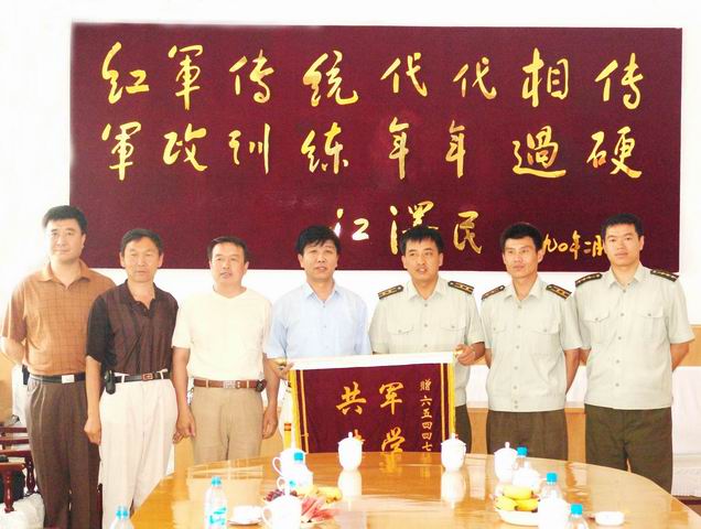 最后,李敏义部长代表学校向部队首长赠送了锦旗和节日慰问金。双方合影留念、座谈后依依话别。