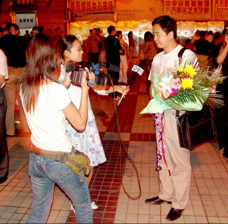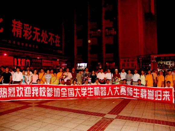 8月25日19:00时许,校党委副书记王凤琴、副校长曲伟建、宣传部副部长、新闻中心主任孟宪国、团委副书记李秀梅及齐怀琴等部分指导教师、校学生会代表等到火车站迎接我校赴京参加“第四届CCTV全国大学生机器人电视大赛”载誉归来的参赛师生。在火车站,副校长曲伟建、计算机控制与工程学院院长戴学丰、校团委书记黄伟中、计算机与控制工程学院李春林教授等接受了齐齐哈尔电视台记者的专访。