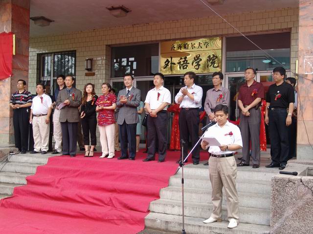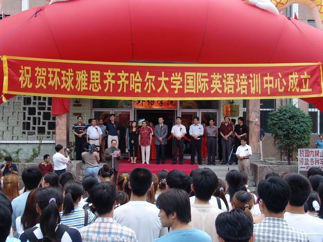 我校校长唱江华、副市长马立群和环球雅思北京总部张永琪校长为中心成立剪彩;我校校长唱江华和环球雅思北京总部张永琪校长为中心成立揭牌。环球雅思北京总部张永琪校长在致词中对我校及各有关单位为中心的成立所给予的大力支持表示诚挚地谢意。他预祝环球雅思与我校合作圆满成功,祝愿环球雅思齐齐哈尔大学国际英语培训中心越办越好。