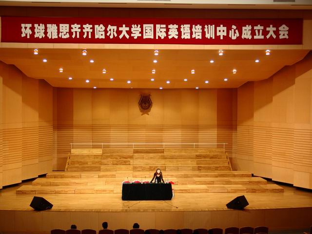 成立大会暨揭牌仪式后。环球雅思北京总部张永琪校长等在我校音乐厅举行了环球雅思国际英语培训发布会的讲座。