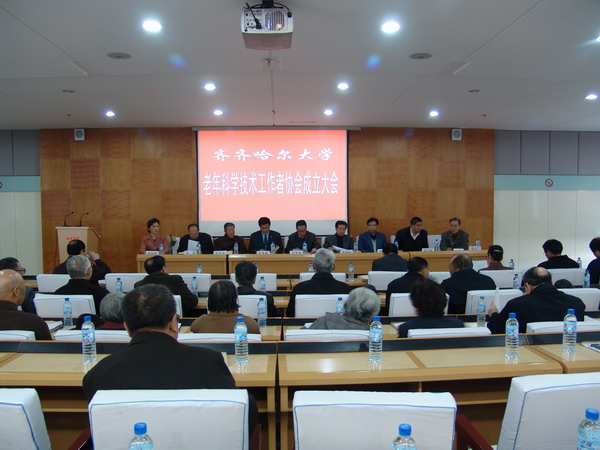 原齐齐哈尔轻工学院副院长、校老科协筹备领导小组成员薛秉昌主持成立大会并致开幕词;离退休工作处副处长韩树勤作老科协筹备工作报告;原齐齐哈尔大学师范学院党委书记、校老科协筹备领导小组成员刘祯宣读老科协章程;大会选举了校老科协第一届理事会理事并推举校党委书记陈承贵、校长唱江华、副校长张忠恒为校老科协名誉会长,推举原齐齐哈尔轻工学院副院长张元士为校老科协会长。张元士会长代表校老科协理事会讲话,对老科协今后开展工作的原则、思路和举措作了说明;与会的市老科协、市科协领导石忠智、张忠义先后讲话致贺。
