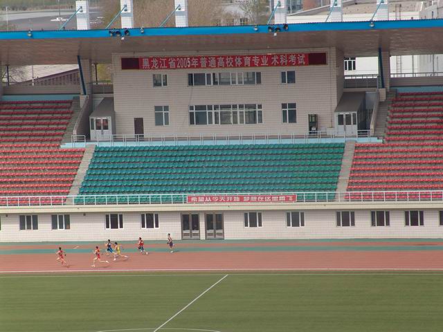 5月11日,大学西区校园彩旗飘扬,2005年黑龙江省普通高校体育专业招生术科统一测试在我校西区体育场开始进行。